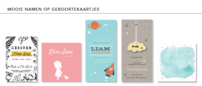Kijk ook eens welke namen wij hebben gekozen op onze voorbeeld geboortekaartjes