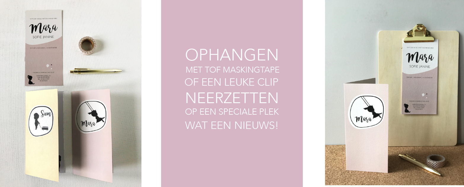 “Kun je zo’n geboortekaartje wel leuk neerzetten?” en “Blijft zo’n langwerpig kaartje dan wel staan?”.