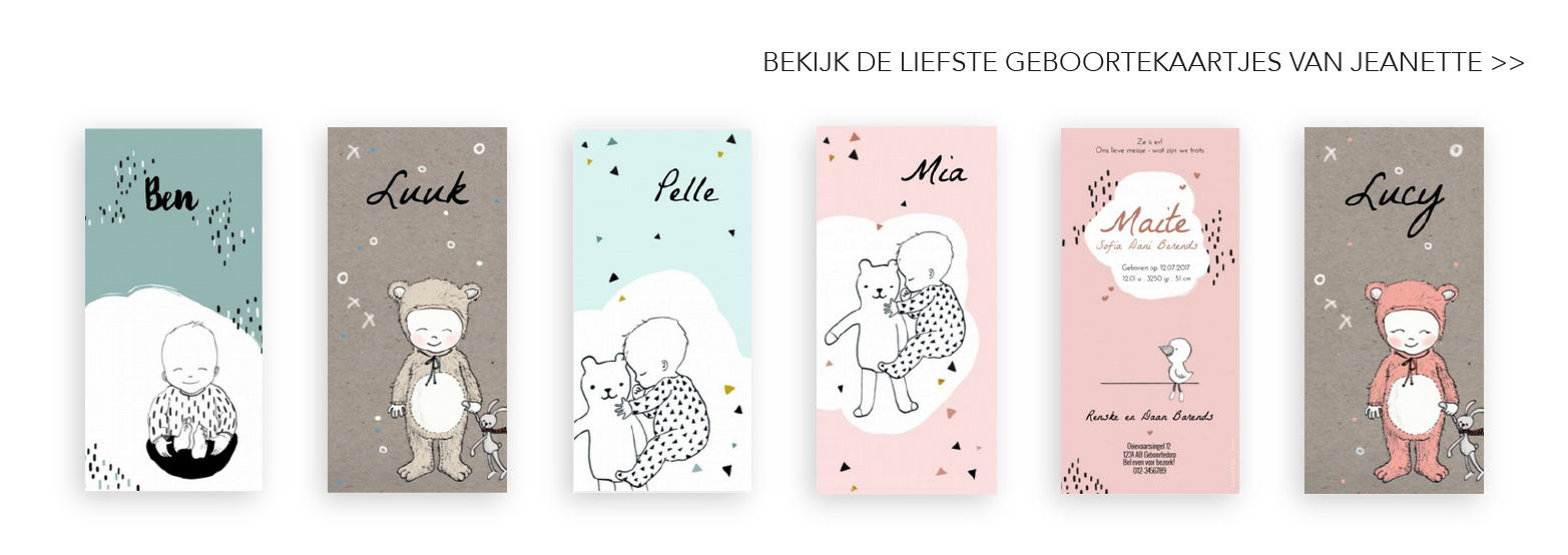 Langwerpige geboortekaarten hebben een stoere en tijdloze uitstraling. Door de eenvoud van het rechtopstaande formaat, krijgen de teksten en de illustraties mooi de ruimte. Als er wat meer witruimte om de tekst heen staat, ziet dit er stijlvol uit. Net als bijvoorbeeld een mooie letterpress-achtige opmaak van de tekst. Alle tekst strak uitgelijnd als een tekstblok. Prachtig!